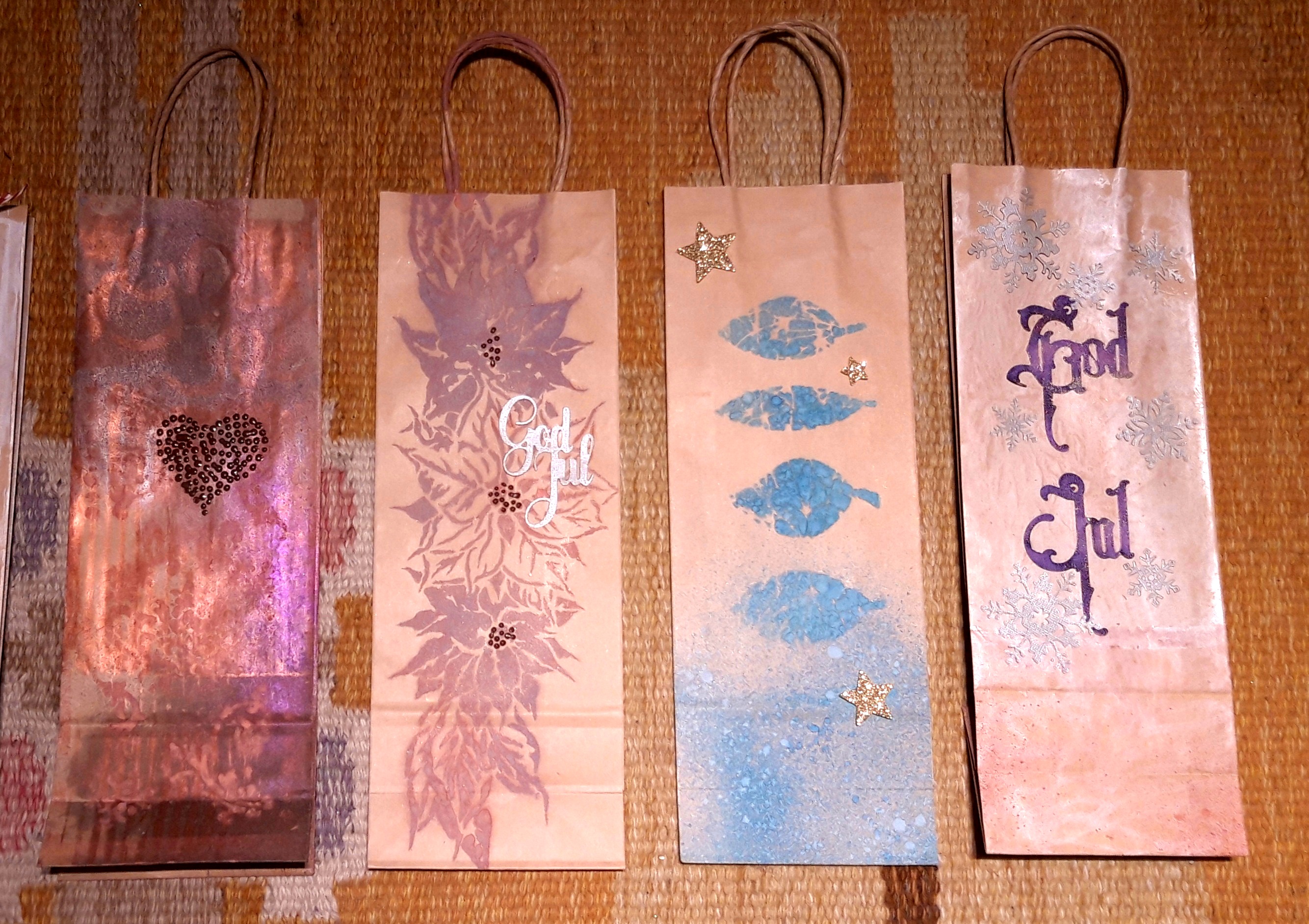 Gå-bort-Present:Handtryckta Presentpåsar för flaska, nedan: