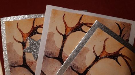 Nordens vackra fjäll och ren-motiv i nålgrayr tryck monterat på: Metallic kort eller frost effekt. Finns i guld och silver; 2 st. 175 SEK